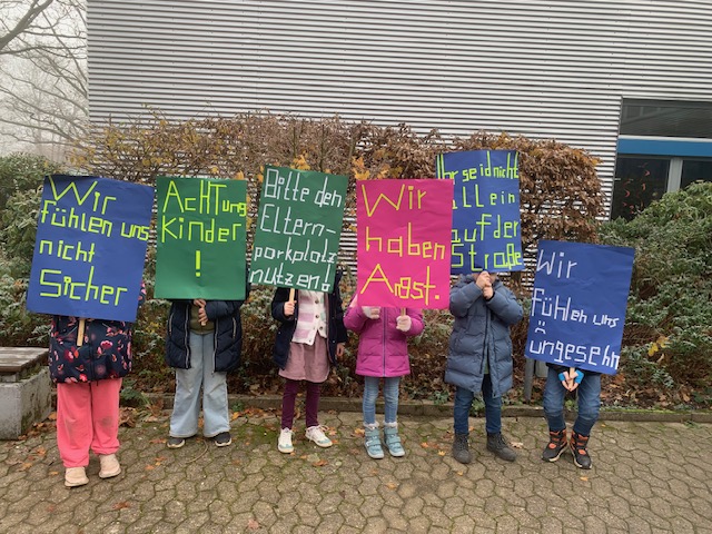 Dazu habe sich alle Klassensprecherinnen und Klassensprecher, bei Wind und Wetter, zusammengefunden, um gemeinsam Zeichen zu setzen und die Eltern daran zu erinnern, wie wichtig Rücksicht, Achtsamkeit und Sicherheit sind.